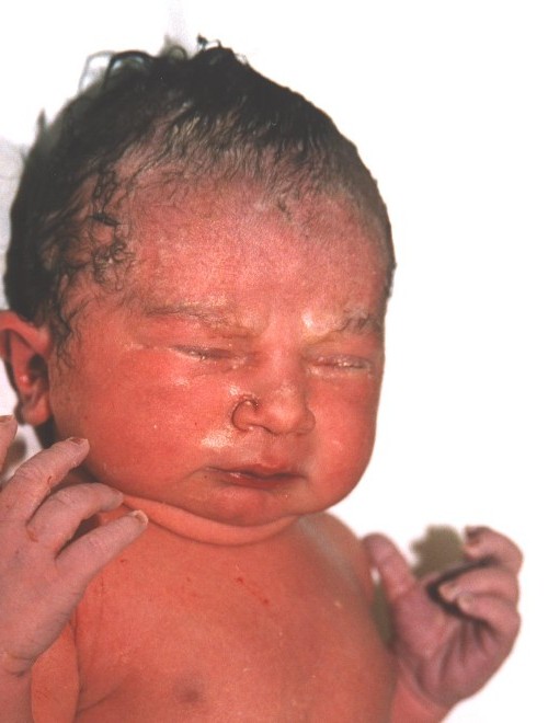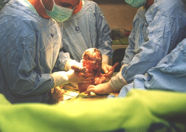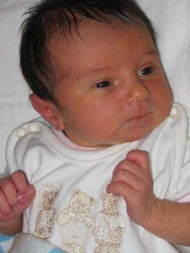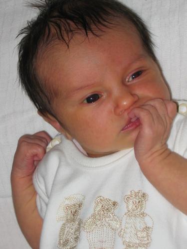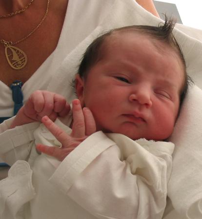 2003. július 2-án délelőtt 10.17-kor készítette kedves kis apuka ezt a két képet. Az elsőn kettő, a másodikon négy másodperces vagyok. És sírok, sírok, sírok. Hova kerültem? Mi ez a nagy fény és kik fogdosnak? Jaj, mindjárt elvágják a köldökzsinoromat, pedig milyen jó is az!